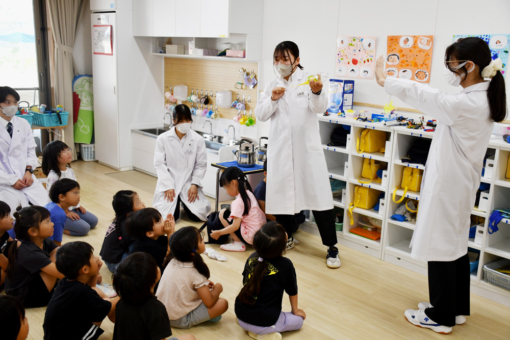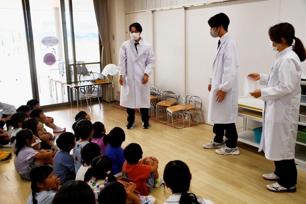 理科教師塾の学生が年間を通して開催する「わくわくサイエンスin東岡山IPUこども園」(全9回)が始まりました。第1回目のテーマは「空気のふしぎ」です。